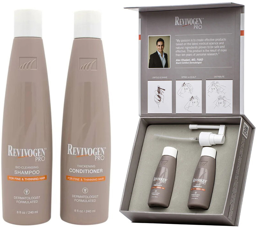 Итак, если вы мужчина или женщина и у вас выпадают либо уже начали редеть волосы, купите набор revivogen MD. Если же на фоне потери волос у вас ещё наблюдаются такие проблемы как ломкость или сечение кончиков - закажите revivogen PRO, поскольку он дополнительно усилен витаминами и питательными веществами, которые поспособствуют устранению повреждений структуры волос.